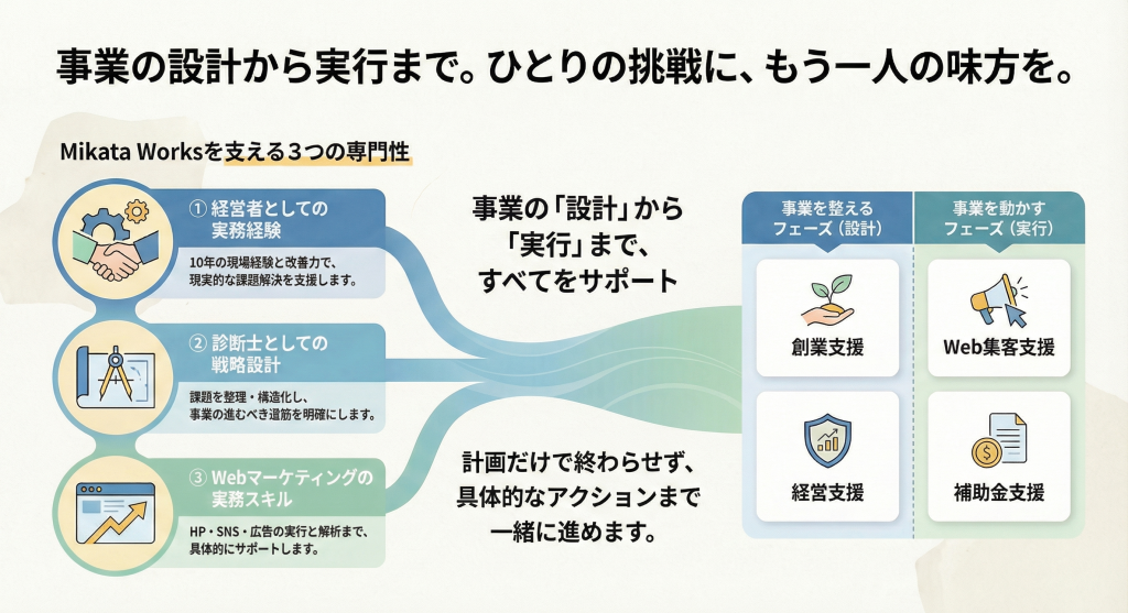 現在は、同じように悩む事業者の“味方”として、日々伴走しています。